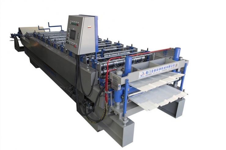 La machine de formage à double couche peut réaliser une machine à deux types de toit, non seulement pour économiser vos coûts mais également votre espace.