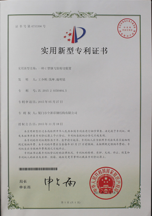 Certificat de brevet de scie sauteuse